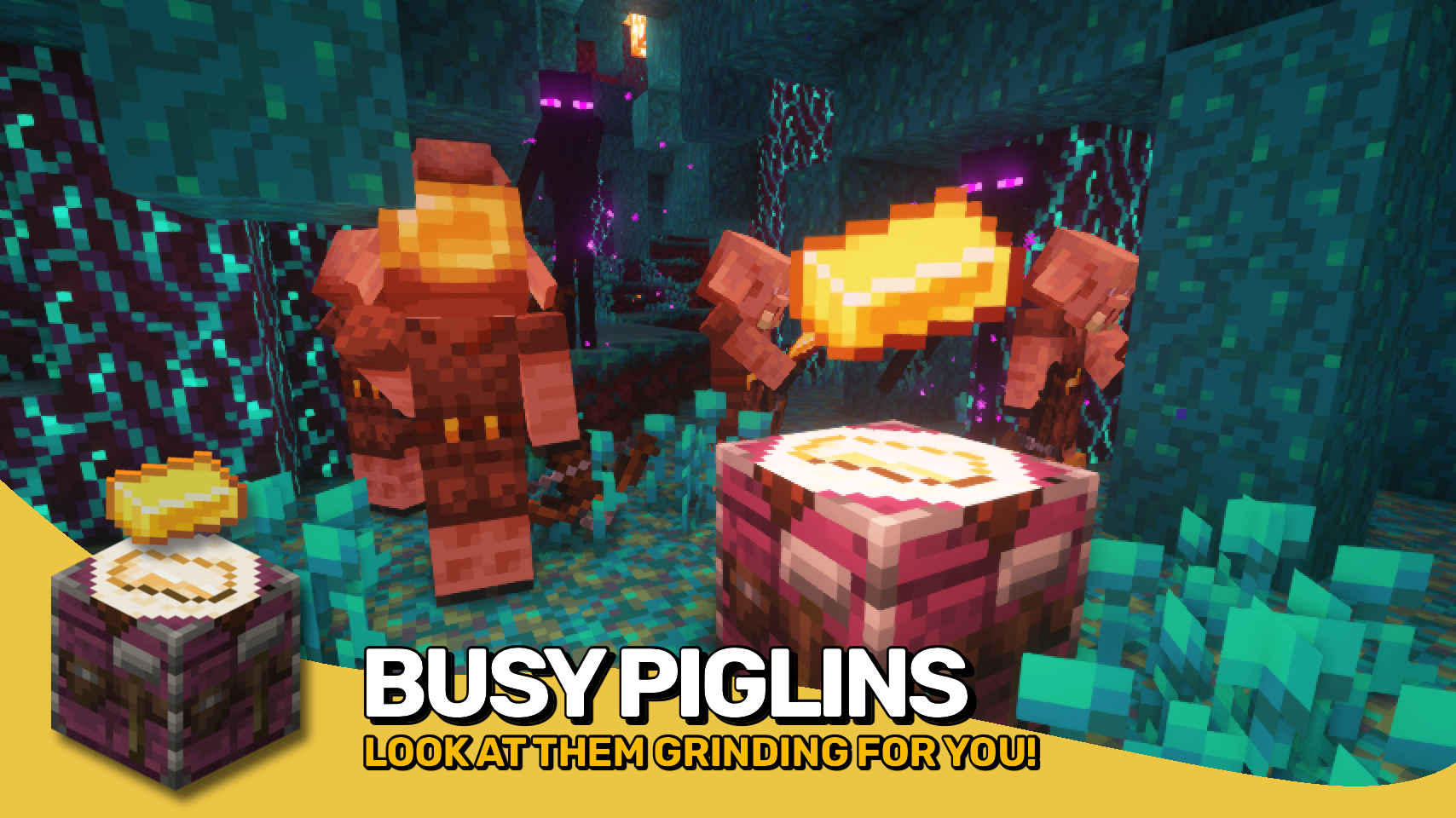 Piglin Proliferation diversifies Piglins by giving unique features to their vanilla variants, as well as adding new Piglin types to fill specific gameplay niches. Along with a few more miscellaneous additions (and lots of content planned for the future), this mod aims to flesh out Piglins and establish their unique identity as a diverse and multifaceted people of the Nether.