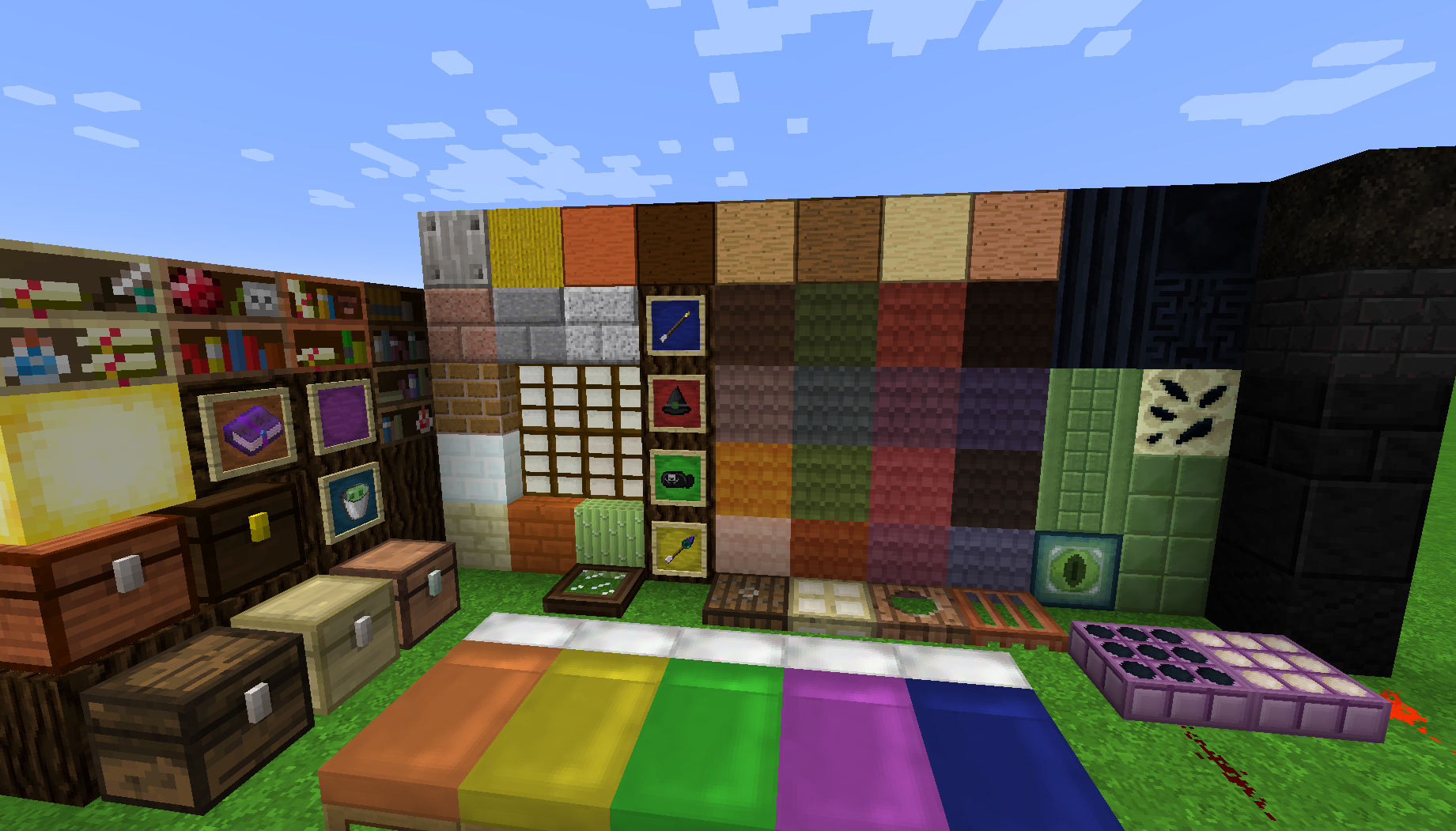 Fairy Lights adds decorative hanging lights that can have any combination of six light variants each with one of the sixteen dye colors.