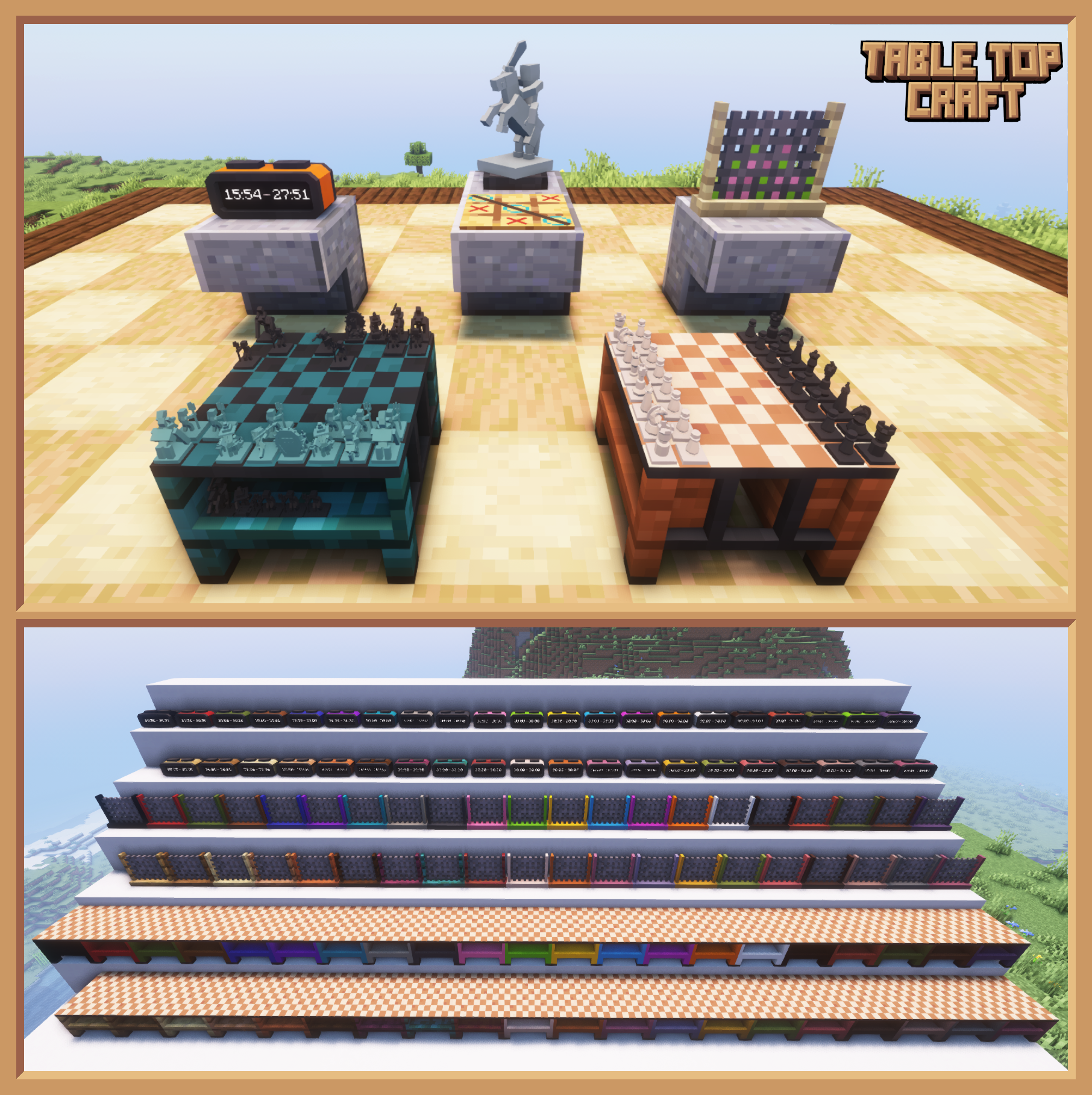 Table Top Craft is a meticulously crafted Minecraft mod that introduces board games to enhance your gaming experience. With its latest update, this mod now offers an expanded array of games. Immerse yourself in the strategic brilliance of Chess and test your tactical prowess. Or indulge in the nostalgic charm of Tic Tac Toe, perfect for a quick match. But that's not all! In response to the overwhelming support from the community, we are proud to announce the inclusion of Connect Four.